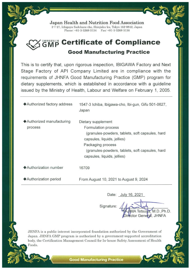 With a delicious pomegranate flavour and easy-to-use liquid form, HSC Collagen is packed with low molecular weight amino acids that are not affected by heat treatment. Plus, Good Manufacturing Practice (GMP) certificate from the Japanese Ministry of Health guarantees the efficiency and safety of our product.
